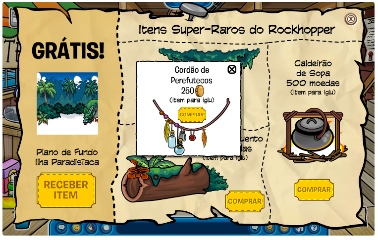 E tem dois novos selos: o selo corta caminho (pra todos) e o selo mar afora (só pra assinantes). E no final os assinantes podem adotar um puffle marrom de graça.