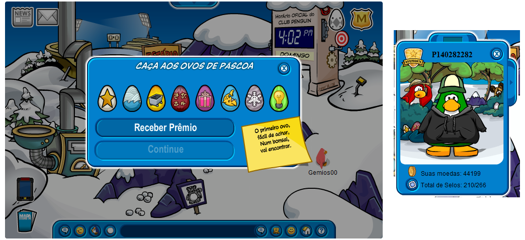 Nesse Mês Nós teriamos 3 festas com o dia da terra, MAS eles cancelaram a caça de ovos de páscoa pelo 2º ano consecutivo (ESTAVA PREVISTO!) mas mesmo assim ninguem me segura esse ano, eu vou achar o Rockhopper? SIM! Eu vou me matar? NÃO! Eu vou ter o iglu mais zica de todos? TALVEZ! A EPF vai ter um update? SIM! Vai ter uma nova classe chamada Invisivel? SIM! O Herbert vai ser pego por mim? SIM! K@R@!0 !!! EU SOU DEUS ? SIM! k@r@!0